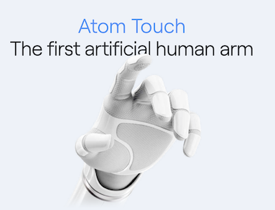 ATOM社は腕を失った患者向けにロボットアームを開発する米国シリコンバレーで起業されたベンチャー企業です。装着することで指までコントロールできようになる人工アームで、フィードバック機構により何かを手で掴んでいる感触も感じることができるようになるスマート義肢です。